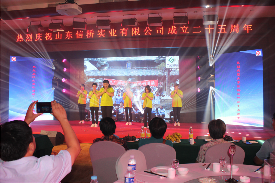 此次慶典晚宴參加人員除了信橋全體員工之外,還有部分老領(lǐng)導(dǎo)和老朋友,大家共同分享了信橋二十五周年的喜悅與精彩。慶典開始之前,演員們辛勤排練,燈光師、音響師共同配合,所有人為了晚會都在努力。下午5點28分,晚會正式開始,全體員工與領(lǐng)導(dǎo)集體合影,各個辦公室全體員工也各自合影。