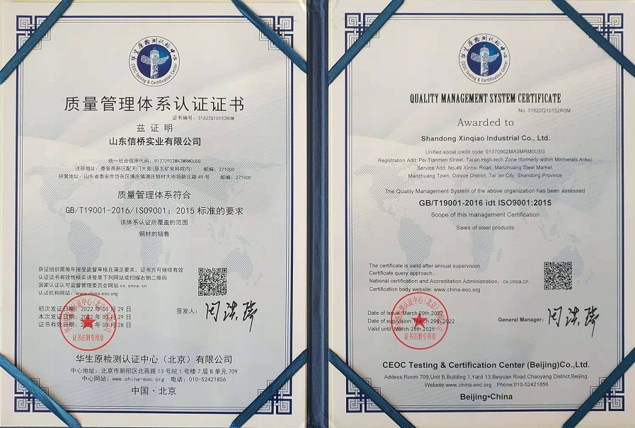 質(zhì)量管理體系認證證書